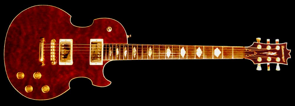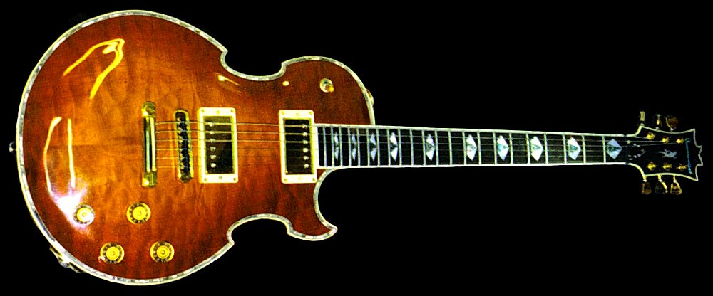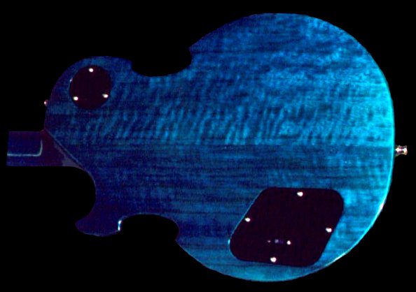 note the flamed corinna body, quilted maple top, ebony